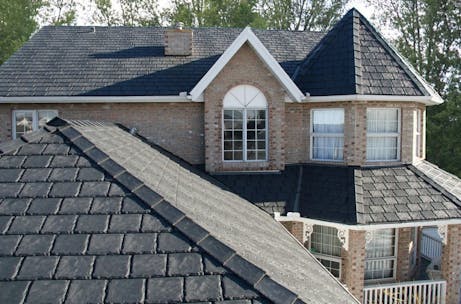 Choose from five beautiful roofing systems: Vermont Slate HP (hail proof), Vermont Slate, Beaumont Shake, Rundle Slate, and Ranchlands Shake.
